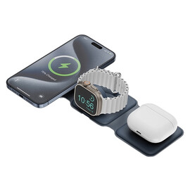 Складная зарядка EnergEA bazic GoMag Trio Plus предназначена для одновременной зарядки трех устройств Apple — iPhone, AirPods и Apple Watch. Благодаря интеграции с MagSafe и мощным встроенным магнитами, панель обеспечивает идеальное совмещение и быструю зарядку ваших устройств. Удобная складная конструкция и элегантное покрытие из жидкого силикона с эффектом Soft-touch делают этот аксессуар не только функциональным, но и стильным дополнением к интерьеру