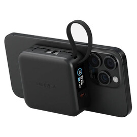 Внешний аккумулятор EnergEA MagPac Mini Plus 10000mAh с MagSafe — компактное и функциональное решение для зарядки ваших гаджетов в любом месте. Устройство объединяет в себе четыре способа зарядки: два разъёма USB‑C, беспроводную зарядку для смартфона (до 15 Вт) и специальную площадку для зарядки умных часов (2,5 Вт). Благодаря встроенному кабелю USB‑C вы можете легко заряжать сам аккумулятор или подключать к нему устройства без необходимости носить с собой дополнительные провода. Особая система укладки кабеля не только поддерживает порядок, но и позволяет использовать аккумулятор как аксессуар с петлёй для удобной переноски.