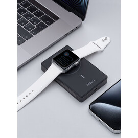 Deppa NRG Watch с MagSafe компактный внешний аккумулятор с магнитной фиксацией и поддержкой беспроводной зарядки Qi, который позволяет одновременно заряжать два устройства через USB-C и беспроводную зарядку. Повербанк совместим с iPhone 12 и новее, Apple Watch Series 1–10, SE и Ultra, а также другими устройствами с поддержкой Qi. Интеллектуальная система защиты предотвращает перегрузку, перегрев, короткое замыкание и перезаряд, обеспечивая безопасную и стабильную зарядку.